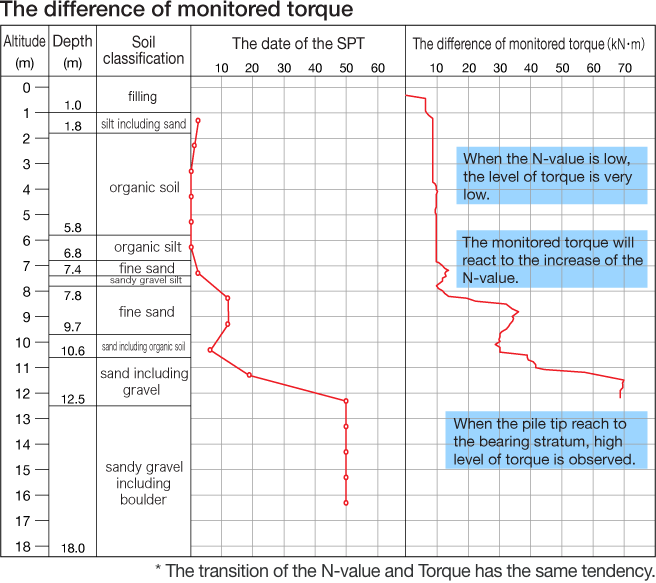 By comparing the monitored torque and the SPT data during the installation, we can implement highly reliable quality control.