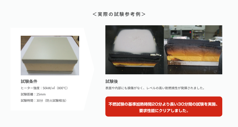 ネオマフォームを金属パネルの芯材に採用することで、不燃認定が取得可能です。他素材の採用例と比較しても優れた安全性を発揮します。